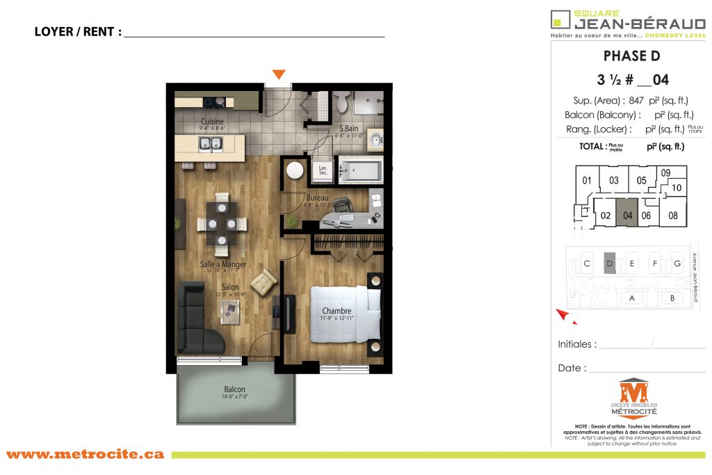 • Type d'unité : 3 1/2 Non meublé